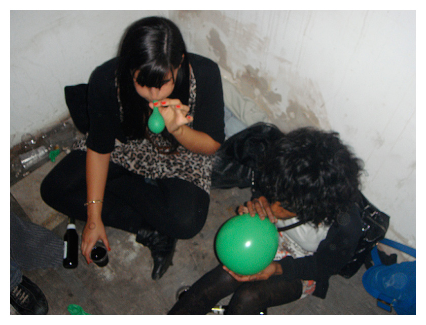 .........ah, here are two girls in the corner, and they seem to be blowing up balloons... how nice