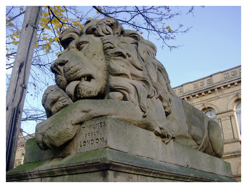 .........saltaire lion with whipped cream on its paw