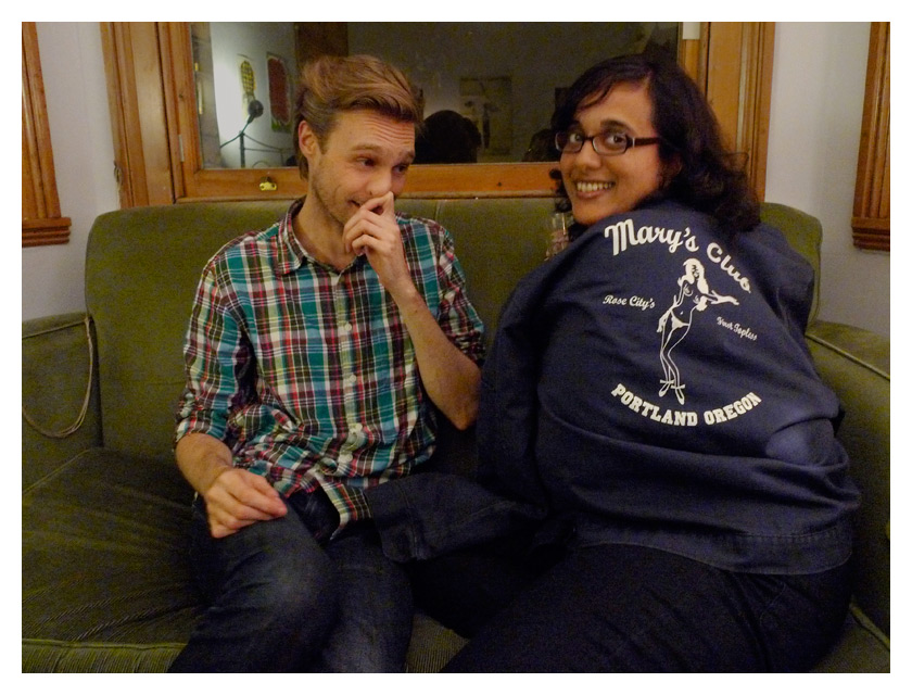 .........priya models tony's jacket while lee admires her third-wave feminism