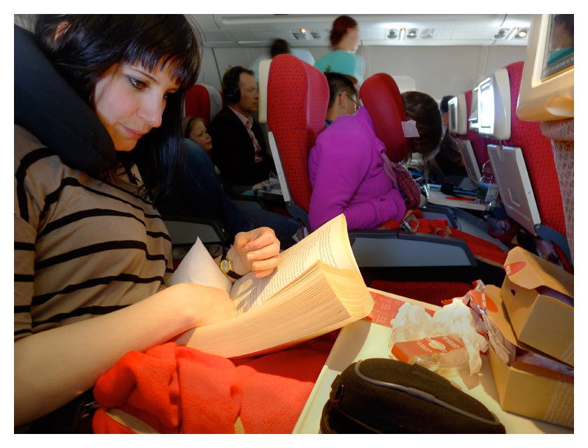 .........the woman across the aisle hasn't quite gotten the hang of the neck pillow