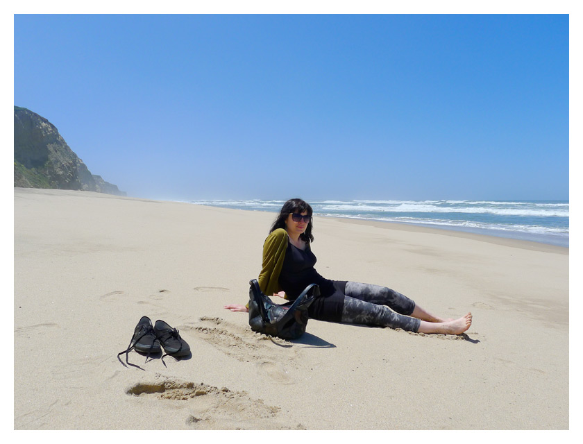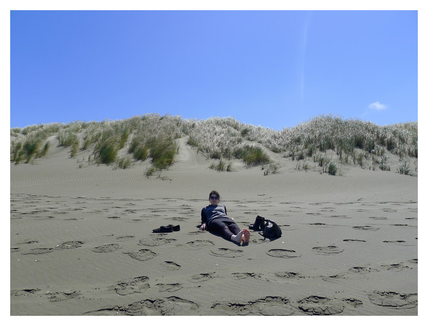 .........kerry chillaxes on ocean beach while we wait for our table at outerlands